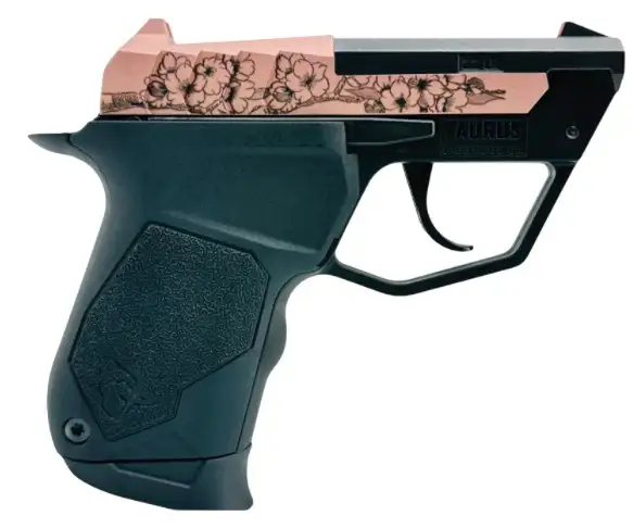 Taurus, MFG# 1-22TUC131-CB, UPC: 725327944300, UOM: EA, 22 TUC, .22 LR, 2.5" Barrel, Fixed Sights, Engraved Cherry Blossom, Rose Gold/Black, 9-rd, TAUR, TAURHG10, TAURHGALL, HG10, HGALL