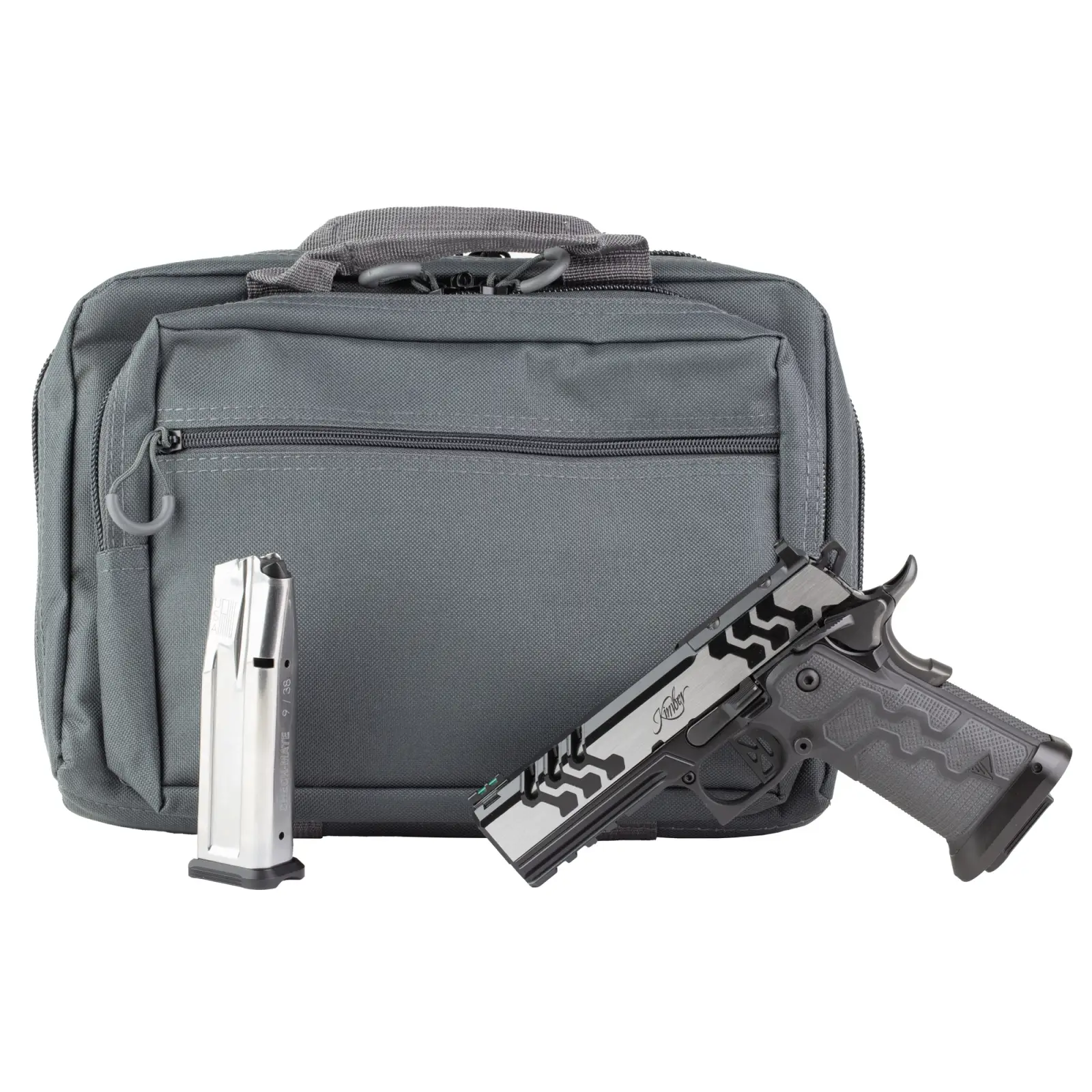 Kimber America, 2K11 PRO Eclipse, Semi-automatic, 1911, Full Size Pistol, 9MM, 4.25" Bull Barrel, Kimpro Finish, Black Frame with Brushed Slide, Black DLC Barrel, MJD Composite Grips, Fixed Rear Sight, Fiber Optic Front Sight, Optics Ready, RMR Footprint, Ambidextrous Thumb Safety, 19 Rounds, 2 Magazines, MJD Magwell Installed