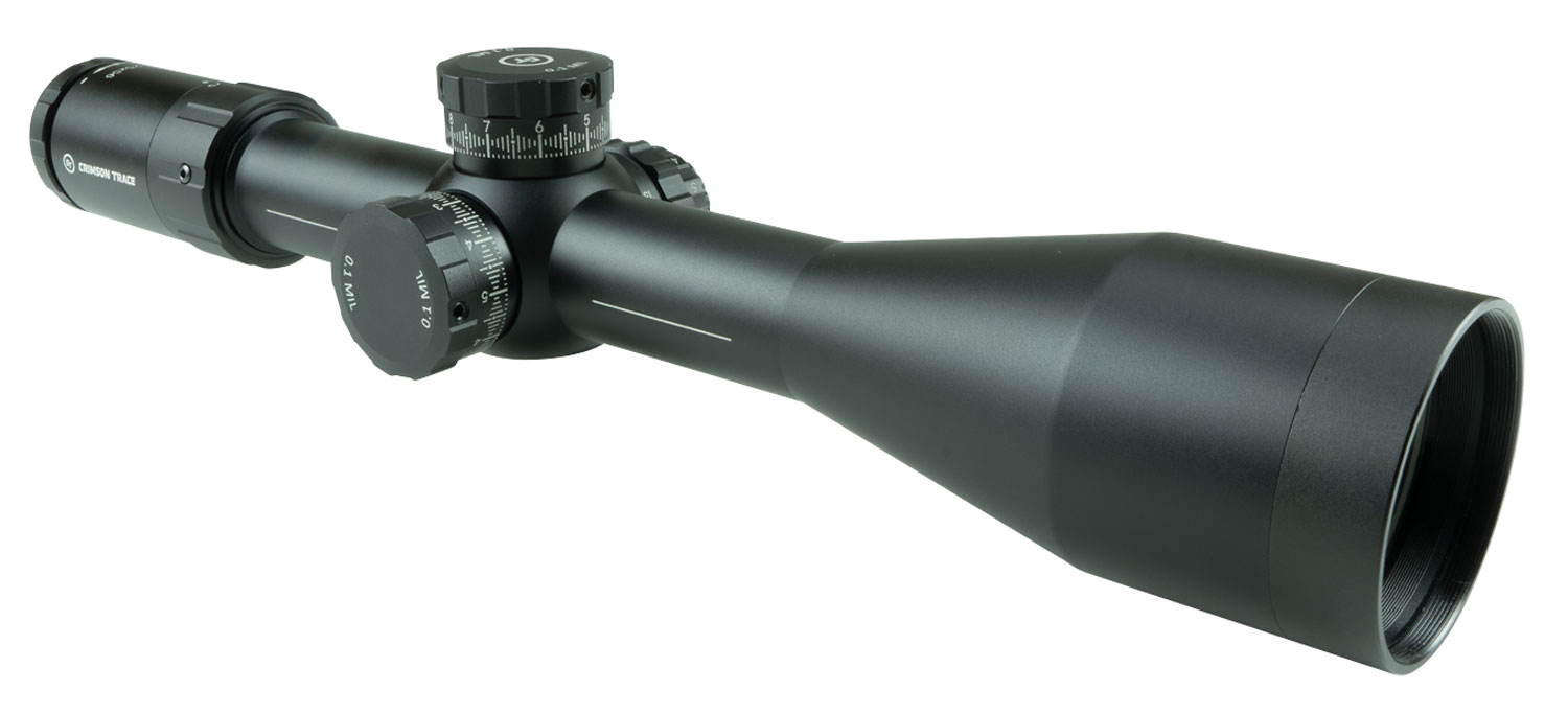 The CTL-3525 3 Series is a feature rich 5-25x56mm long-range rifle scope that has been purposefully built from the ground up. The scopes First Focal Plane (FFP) and impressive Japanese ED glass clarity makes for an unparalleled shooting experience. The custom designed MR1-MIL advanced reticle is fully illuminated and offers quick hold-over points for windage and elevation. The exposed .1 MIL tactical turrets provide a precise and rugged feel when dialing for the most accurate of shots. The entire Crimson Trace Scope Line offers EZ Mount Leveling Indicators for quick and exact mounting and red alignment ring for proper eye placement.