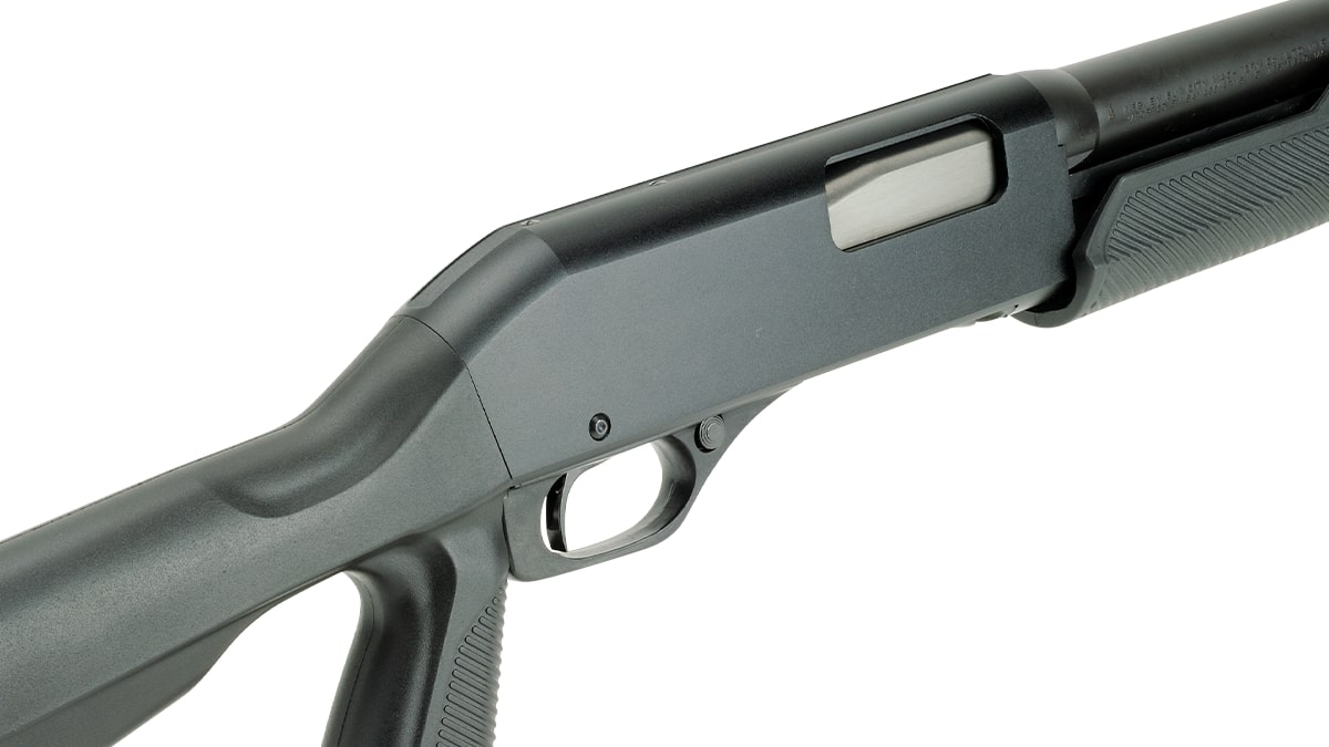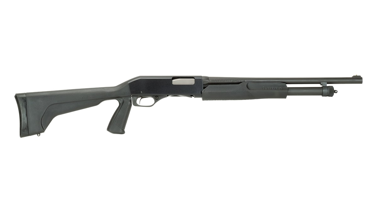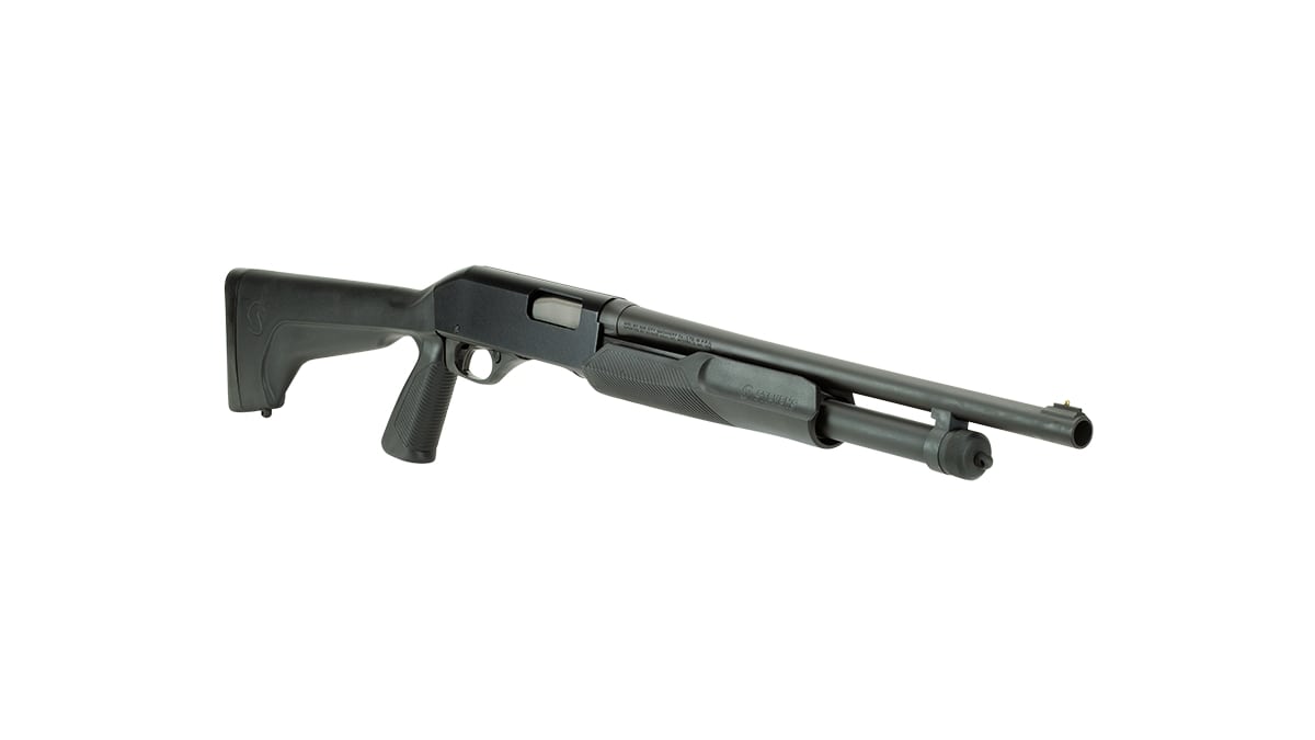 Take on any tactical situation with a shotgun built specifically for the task. This 320 Security model combines an 18.5-inch barrel, bead sight, and a black matte synthetic stock with a pistol grip. Like all 320 shotguns, it features a smooth, reliable pump action, proven rotary bolt and dual slide-bars.