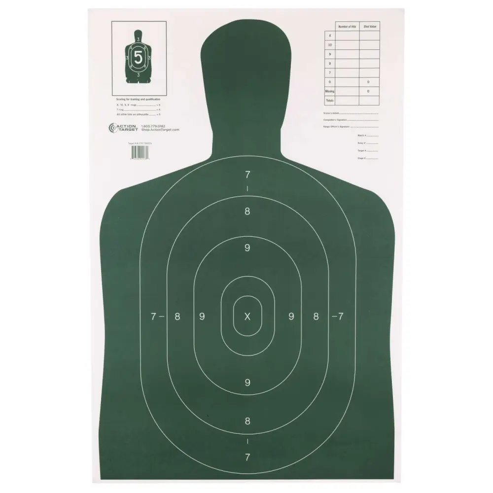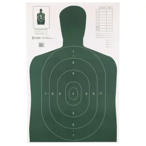 The full-sized B-27 target features a silhouette with the cut off below ring 7.