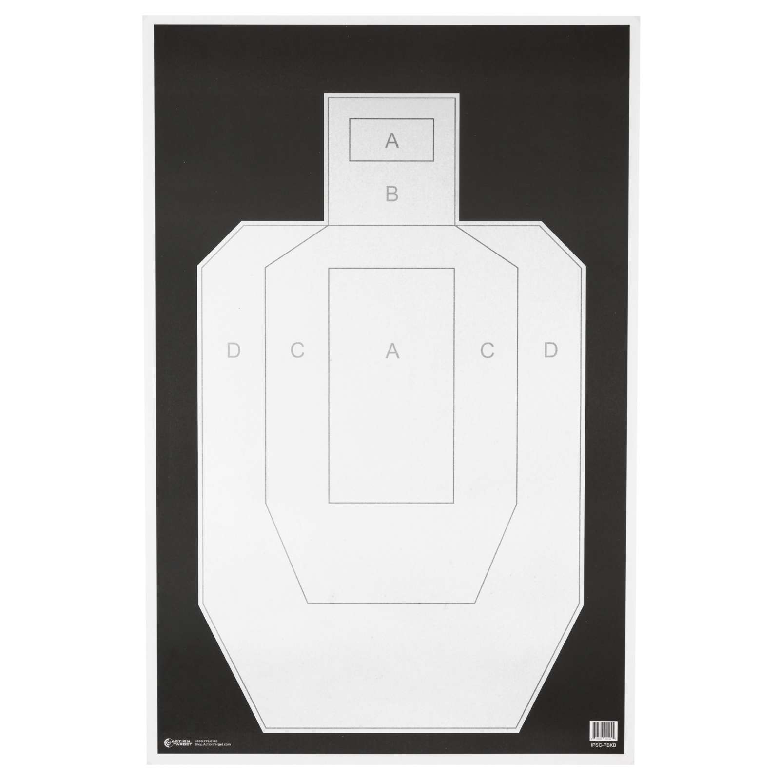 Action Target IPSC/PBKB, Unofficial IPSC Practice Target, High Visibility Black Background On White Paper, 23"x35", 100 Per Box IPSC-PBKB-100