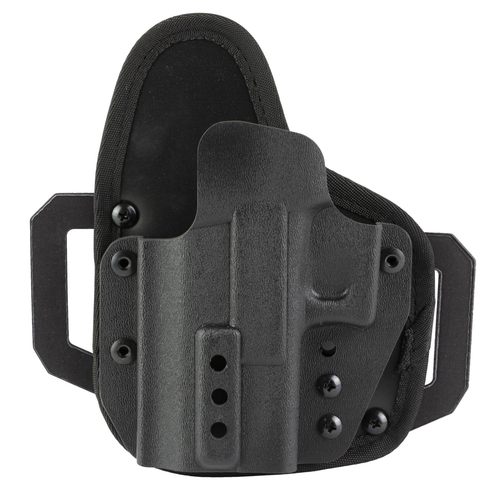 The OMNICARRY holster is designed as a 'universal fit' concealed carry holster that fits over 300 different handguns. No need to search for multiple holsters for each sidearm model - OMNICARRY does the job for them all. Go ahead and carry a different handgun every day, but why not use the same holster with a consistent fit and draw - the OMNICARRY has you covered with over 300 different handgun fits. Don't waste time looking through your closet for different holsters, simply choose the OMNICARRY as your universal daily carry solution. The fully adjustable patent pending backer plates make fitting simple and secure.