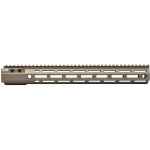 The Aero Precision Minimal Optical Deflection (MOD) 4 handguard seamlessly blends robust construction with an ergonomic form factor, ensuring no compromises between the two. Machined from 6061-T6 aluminum, the handguard is engineered with a focus on stiffness to drastically reduce deflection under load. It attaches to the upper receiver via a steel barrel nut, which also serves to significantly reduce point-of-impact shift when using an infrared laser aiming device under load.