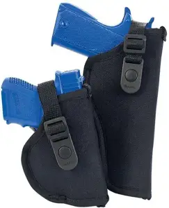 The Cortez Holster by Allen features a rugged polyester exterior construction with nylon interior and an adjustable strap with an easy-open snap and level to keep your firearm secure when not in use. The smooth snag-proof lining with web sight guard makes it easy to draw your weapon when needed. This holsters molded belt loop fits up to a 2" belt.