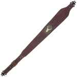 The Big Game Suede sling has a suede leather face with decorative stitching framing an embroidered deer silhouette. The suede lining provides a non-slip grip on the shoulder.