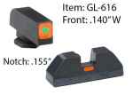 AmeriGlo brings a clear advantage to your shooting experience on and off the range. The CAP sight is designed with large, highly visible front and for rapid sight acquisition. This model has a green tritium square with orange outline front with a notch flat black rear that has a horizontal Lumi-line. It is compatible with Glock.