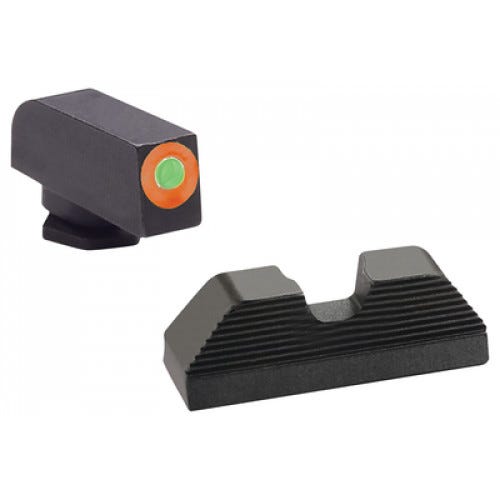 This UC Tritium sight set is designed with large, highly visible front for rapid sight acquisition. It has a green tritium lamp with a luminescent outline front sight and round notch, serrated steel rear sight.