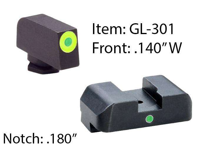 AmeriGlo Pro I-Dot 2 Dot Sights for Glock 17,19,22,23,24,26,27,33,34,35,37,38,39, Green/Green, Front and Rear Sights GL-301