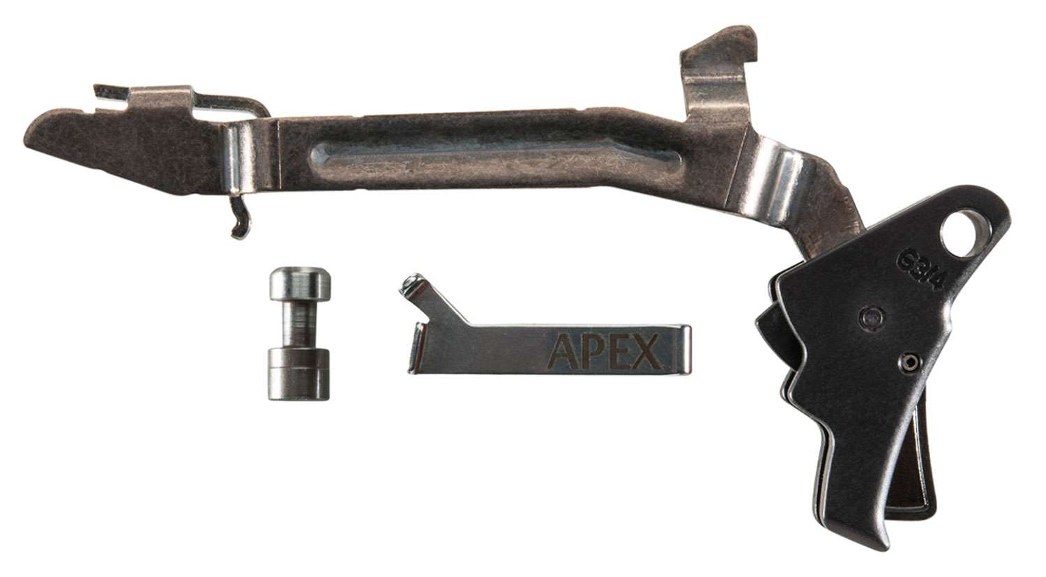 The Action Enhancement Kit for Glock pistols features the Apex Action Enhancement Trigger, with Gen 3 Factory Trigger Bar, Apex Ultimate Safety Plunger for Glock and Apex Performance Connector. The kit is a direct drop-in replacement of the factory polymer trigger, safety plunger, and connector and provides for a smoother trigger pull with reduced travel, reduced reset, a crisp break, and approximately a 1 lb. reduction in trigger pull weight.