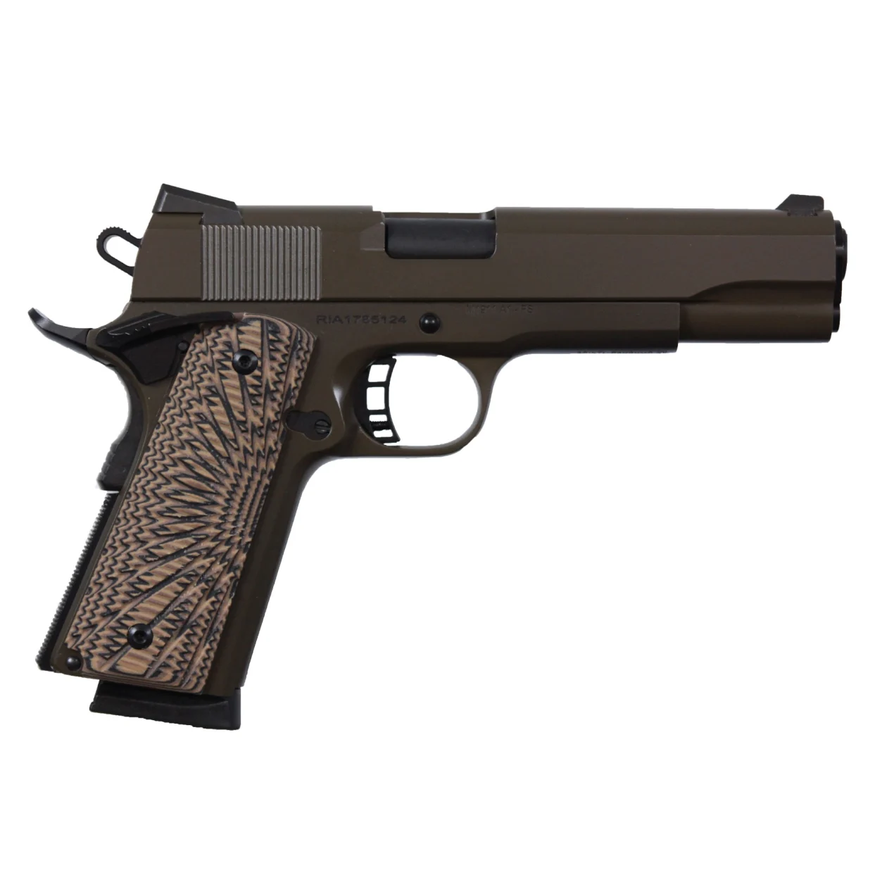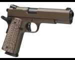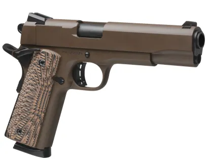 The Rock Standard full-size is built in traditional classic 70 series design and delivered with our top quality production and engineering standards. It's chambered in .45ACP with a 5” button rifled barrel supported by a full length guide rod. Smooth, angled, snag-free style allows for quick draw in fast need situations. Includes a low profile angled rear sight along with skeletonized hammer and trigger with adjustable over travel stop and ambidextrous safety standard in the Rock series. Finished with a tough, Patriot Brown Cerakote and comes with G10 Desert Storm Grips. True to all Rock Island 1911s, it comes with a crisp factory 4- to 6-pound trigger, making it a great experience right out of the box.