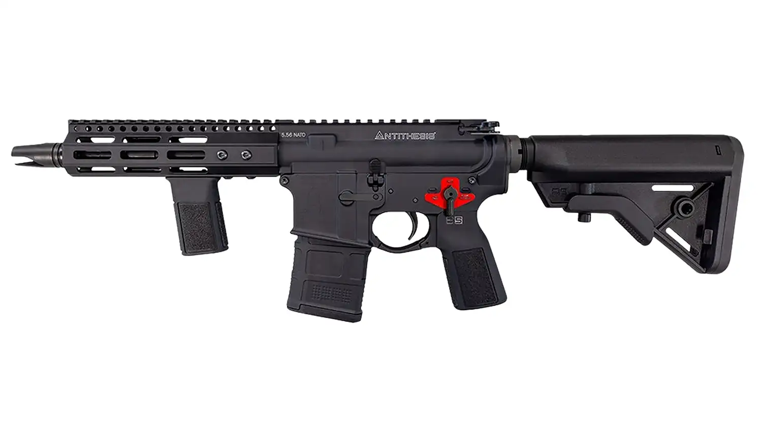 The Franklin Armory Antithesis is a new class of firearm, completely unregulated by the National Firearms Act (NFA). The patent pending Antithesis is intended to fire both, multiple projectile ammunition and traditional single projectile ammunition through a rifled bore in a shoulder fired firearm with a barrel less than 16" long.