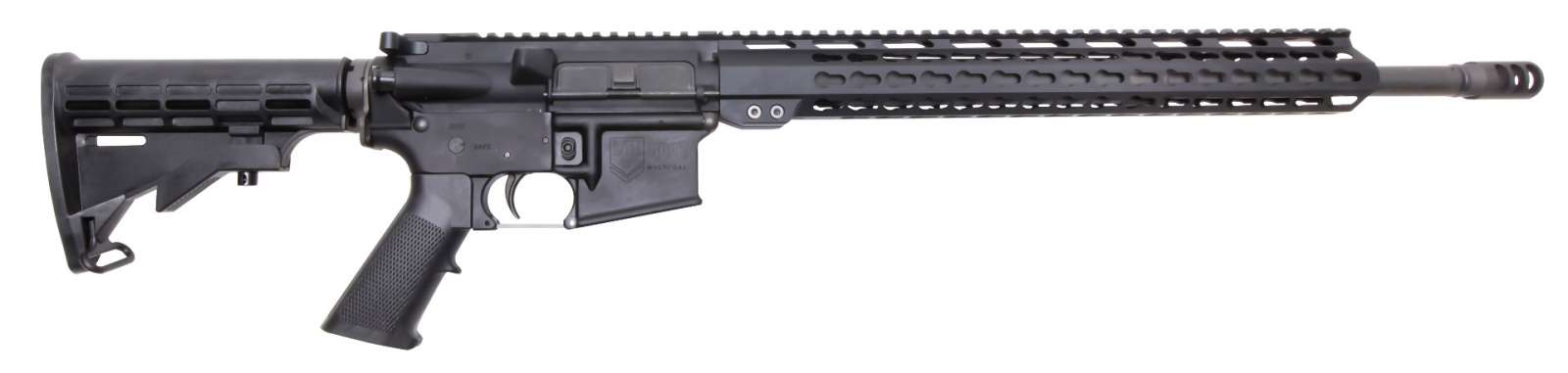 American Tactical's AR-15 style 450 Bushmaster Rifle is affordable and optic ready and built for today's modern hunter. This Bushmaster Hunting Rifle features a 16" barrel, Keymod aluminum free float handguard and a 15" Keymond rail. The handguard readily accepts KeyMod accessories. The picatinny mounting platform is designed to fit your preferred optic. Gas operated AR platform rifles offer less recoil and a lighter weight than traditional hunting rifles making it ideal for your next hunting trip. Includes a 5 round polymer magazine. 100% Made in the USA and Assembled in Summerville, SC by American Tactical.