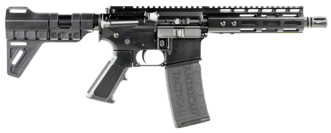 The American Tactical Imports 556 Milsport is a compact and powerful semi-automatic pistol chambered in 5.56 NATO. With a 7.5" barrel and a 30-round magazine, this pistol delivers reliable performance and accuracy in a small package, making it ideal for home defense, range use, and tactical applications.