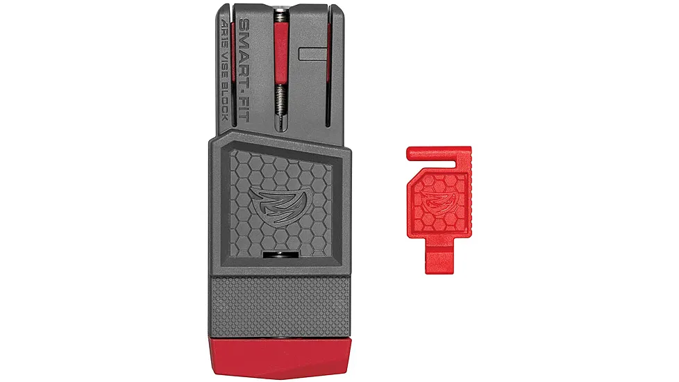 No more customizing static blocks, the revolutionary design of the Smart Fit Vise Block adjusts to fit every AR15 magazine well out there. The Smart Fit allows you to work on your lower receiver with a solid foundation for changing out buffer tubes or fixed stock receiver extensions. Insert the block into the magazine well and simply rotate the adjustment handle to tighten the fit. This block can also be used with an inverted lower receiver to work on pistol grips or allow easy access to the underside of your AR15. The included Pivot Lock holds the gun open giving you access to the chamber and barrel for easy cleaning.