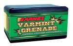 Originally developed for military applications, the lead-free Varmint Grenade delivers sniper-like accuracy for dependable long-range kills. The hollow-cavity, flat-base bullet features a copper-tin powdered metal core surrounded by a gilding metal jacket. The bullet remains intact at ultra-high velocities in fast twist barrels, while its highly frangible core fragments violently on impact, virtually vaporizing ground squirrels and prairie dogs, even at long range. Varmint Grenades instantly expend their energy, seldom exiting large predators like bobcats and coyotes, leaving valuable pelts virtually undamaged. Because of the Varmint Grenade's construction, it produces the best accuracy results when seated off the lands and grooves .020".