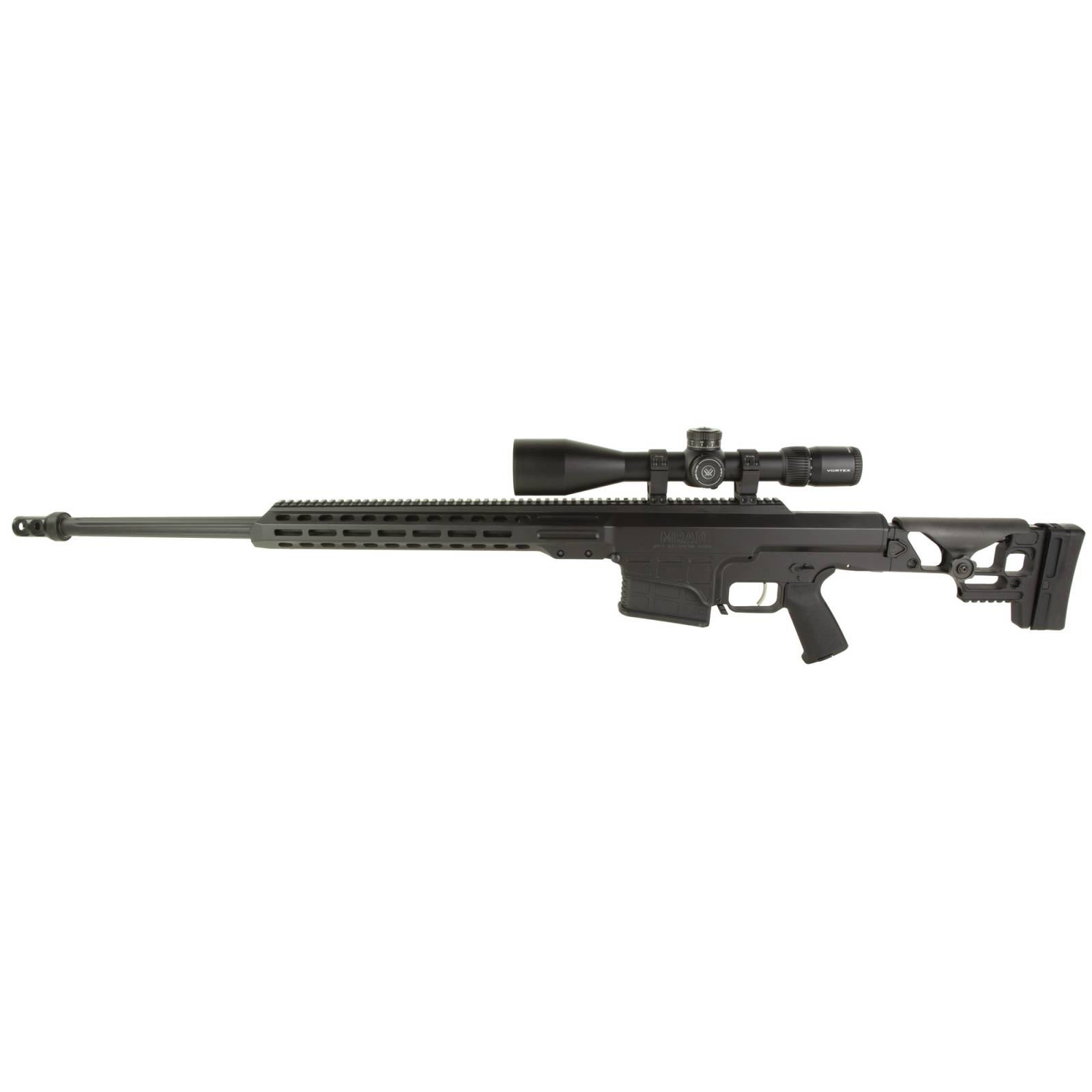 Barrett, MRAD, Bolt Action Rifle, 338 Lapua, 26" Barrel, 2 Port Muzzle Brake, Cerakote Finish, Black, Adjustable Folding Stock, Magpul MOE Grip, 10 Rounds, 1 Magazine, Vortex Venom 5-25x56 FFP, EBR-7C (MRAD) Reticle, Pro Riflescope Rings High 34MM