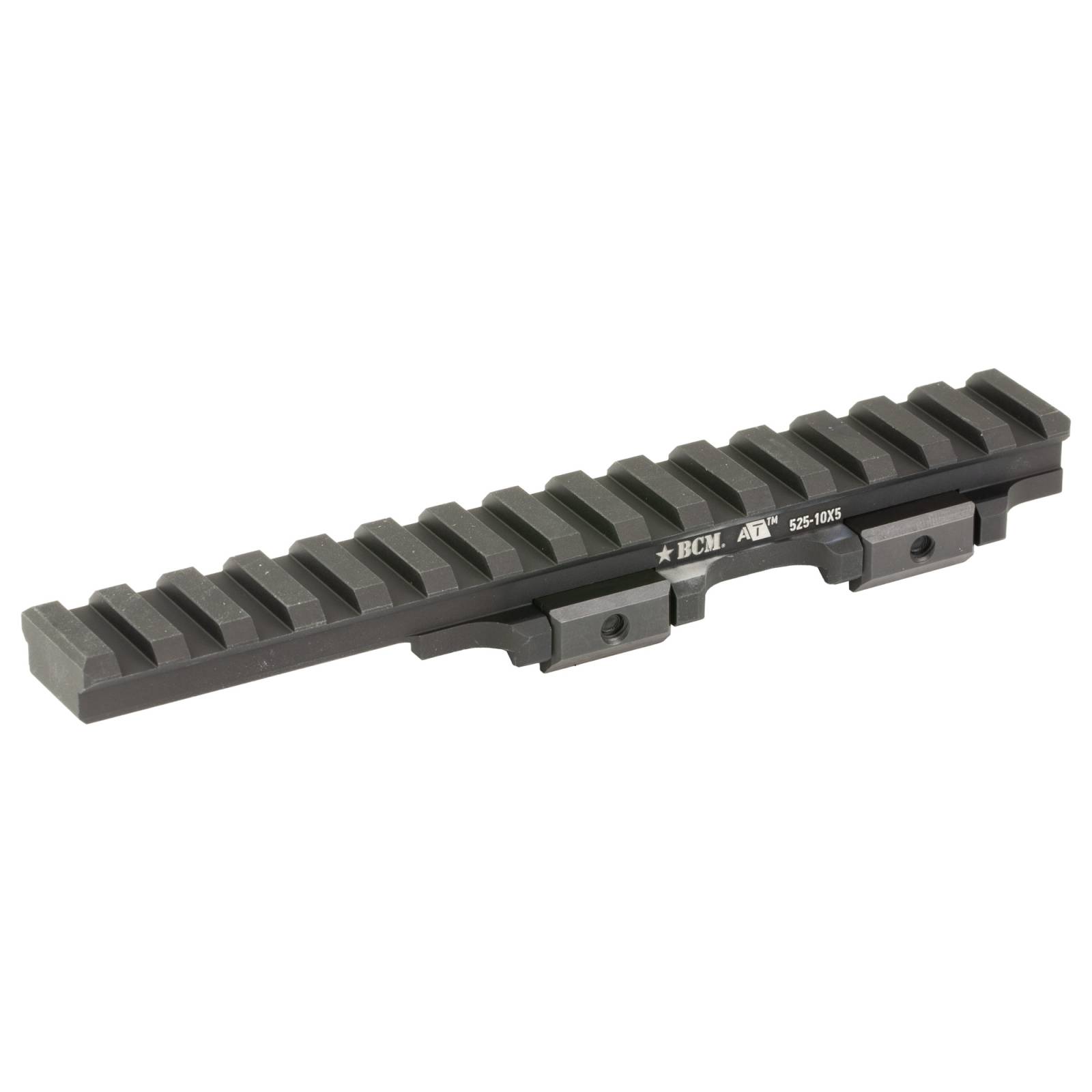 A/T Optic Riser 525-10x5 is approximately 6-1/8" long and offers a cantilever section for applications where the end user desires to run an attachment or optic over the handguard while avoiding 'bridging' the optic from the upper to the handguard. This riser has 10 recoil slots on the main body, and 5 on the cantilever section for a total of 15 slots (16 lugs). Optimized for close combat ranges, the BCM A/T Riser creates a platform that raises the centerline of attached optics and magnifiers by 0.525 inches which raises typical lower 1/3 optics to approximately 2.16 inches height and absolute co-witness optics to approximately 1.93 inches height. This additional height enhances the trained end user's situational awareness, and further, makes it possible for them to take better aimed shots if they are using the optic in conjunction with night vision or other PPE systems.