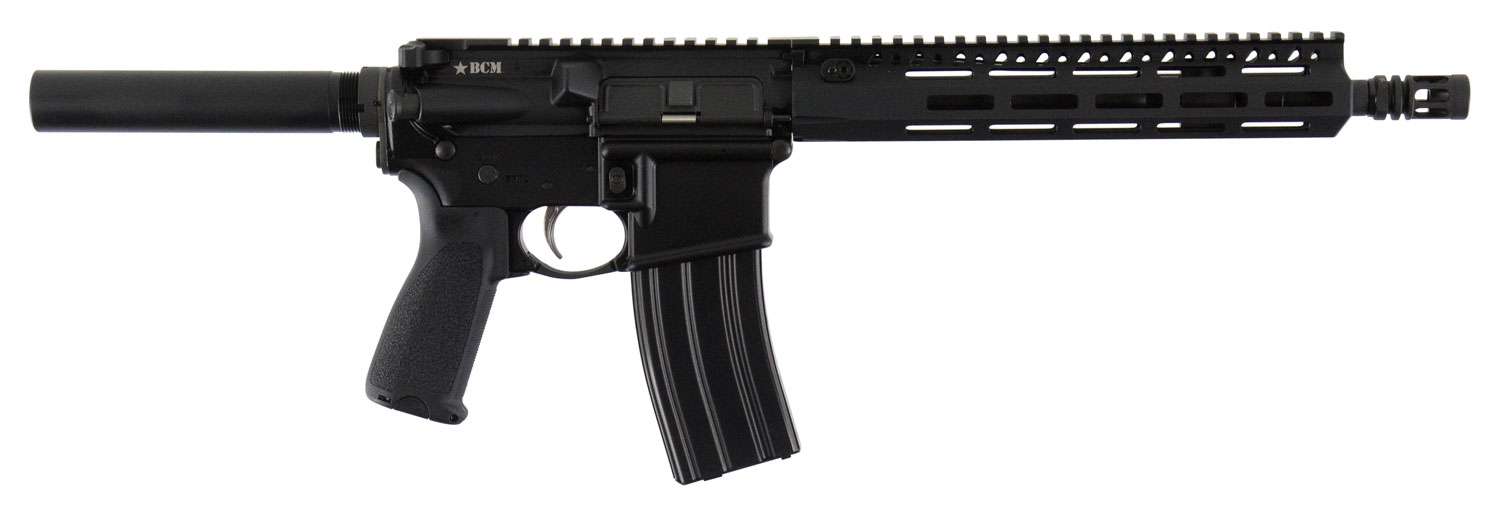 BCM RECCE-11 MCMR features a steel Government profile barrel with a manganese phosphate finish including the MOD 0 Compensator all incased in the BCM MCMR-10 free floating handguard. The Picatinny rail on the flat top receiver is ready for sights, optics or both. The aluminum receiver with a hard-coat anodized finish, M4 feed ramp barrel extension and feed ramp make the pistol lightweight and easy to carry with a slight for the QD Sling Swivel mount. Fire controls are marked SAFE and SEMI and feature a low shelf for RDIAS installation if desired. This firearm allows features an upgraded BCMGUNFIGHTER charging handle. Includes one magazine, cable lock, USGI Manual and FET. This model does not have a brace.