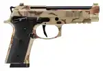 The Beretta 92XI Foreign Combat Series, where the rich tapestry of European military history meets cutting-edge firearm innovation. Inspired by the valor and dedication of soldiers across the continent, each pistol in this exclusive collection is crafted to honor the legacy of European military camouflages. Hand-painted by disabled combat veterans, every stroke of camouflage pays homage to the courage and sacrifice of those who have served. Desert Disruptive Pattern Material (DDPM) is a camouflage pattern for British military deployment to arid or desert regions. The British Army first used a form of DDPM in 1985 in the Middle East. The design went through minor changes and continued in use with the Royal Marines and the Parachute Regiment until the 1990s. Includes two magazines.