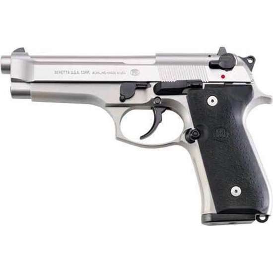 The Beretta 92FS Inox it is perfect for home or personal defense, as well as concealed carry and recreational shooting. It gives you all the features of the legendary 92FS or M9 in a rugged and attractive satin stainless steel finish. The slide, barrel and internal parts are all stainless, while the alloy frame is anodized to match the color and finish of the other components. It also features stippled-textured soft rubber grips that further absorb recoil while affording a firm and positive grip. It employs an open-slide, short-recoil delayed locking-block system, which yields a faster cycle time and delivers exceptional accuracy and reliability. The reversible magazine release lets you use either hand for tactical magazine changes, while its ambidextrous safety-decocker makes it flexible for right- or left-handed persons or for shooters trying out different gripping or shooting styles. Its satin stainless finish is highly resistant to sweat and corrosion, and a tool-free disassembly latch makes it a snap to take the pistol apart for cleaning. This CA compliant model has a 4.9" barrel and a 10-round magazine.