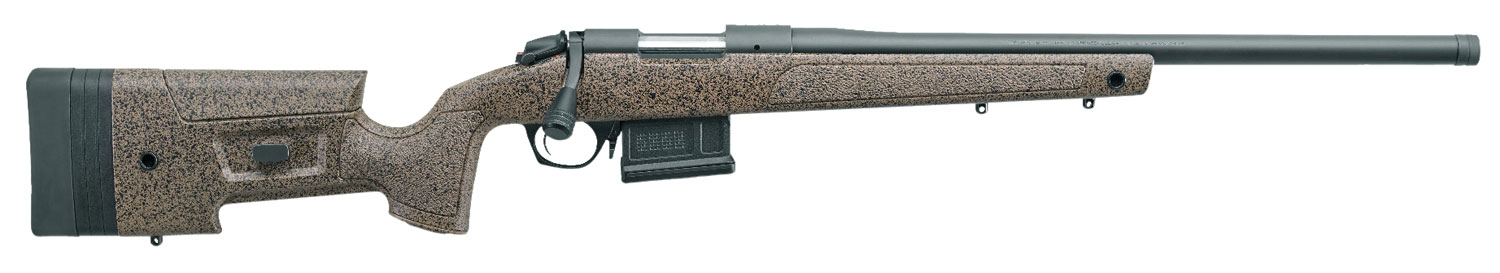 Bergara's B-14 Hunting and Match Rifle (HMR) is built for both hunters and competition shooters. It supports a fully free-floated, 4140 CrMo steel, barrel to achieve optimal precision. The barrel also features a matte blued finish, is drilled and tapped, and has a threaded muzzle which includes a thread protector. The B-14 HMR rifle features an integrated mini-chassis molded into the stock to give the rifle repeatable bedding and accuracy. The stock also has an adjustable cheekpiece, length of pull spacers, and a QD flush cups for easy attachment and detachment of slings. Its super-smooth B-14 Action, is a two-lug system with a Sako-style extractor and a coned bolt nose and breech to ensure a smooth feeding and extraction of the cartridge. It's also outfitted with a Bergara curved trigger to guarantee a crisp, clean pull every time you fire the rifle.