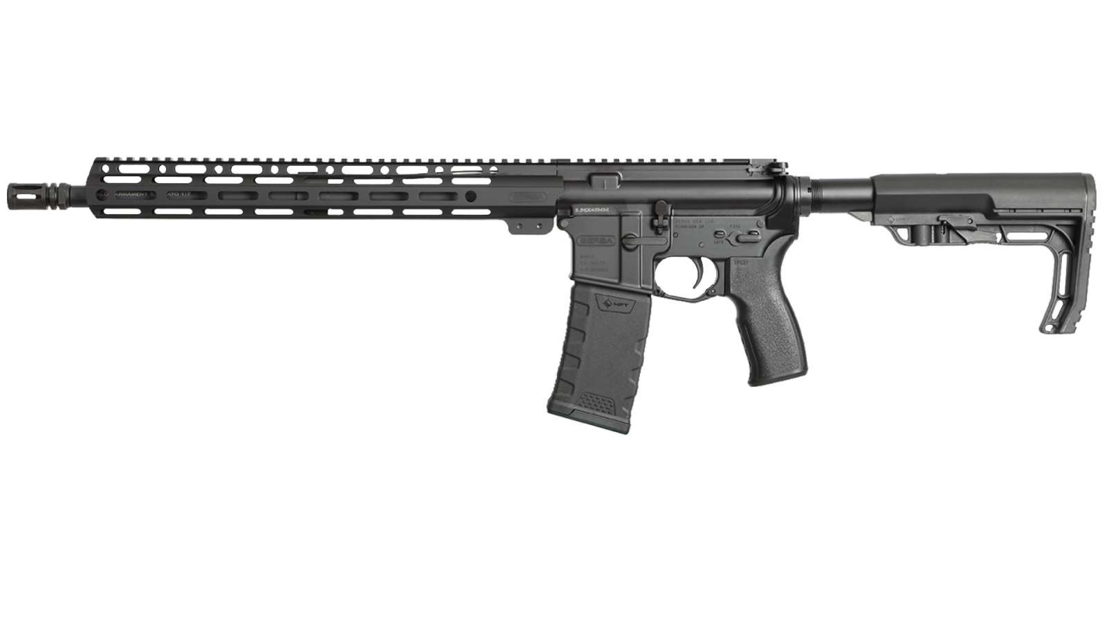 Bersa BAR15R, Semi-automatic Rifle, AR, 223 Remington/556NATO, 16" Barrel, Anodized Finish, Black, Mission First Tactical Minimalist Stock, Mission First Tactical Grip, 30 Rounds, 1 Mission First Tactical Magazine BAR15RMFT