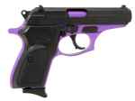 Bersa's Thunder 380 is ideal for personal protection and offers accuracy, reliability, versatility in a lightweight, compact design. Its aluminum alloy frame has a combat style trigger guard, integral locking system and decocker safety, and a micro-polished bore with sharp, deep rifling. The steel slide features a 3-dot sight system for the prefect sight picture. The Thunder 380 features an extended finger rest on the bottom of the magazine for comfort. This model has a matte black slide with a purple cerakoted frame and black polymer grips.