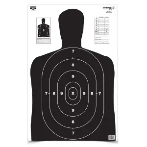 Great for indoor and outdoor ranges. Practice like the pros with these silhouette targets. This target features a high-contrast black silhouette, scoring table for recording hits and values, and paper score card printed on target.