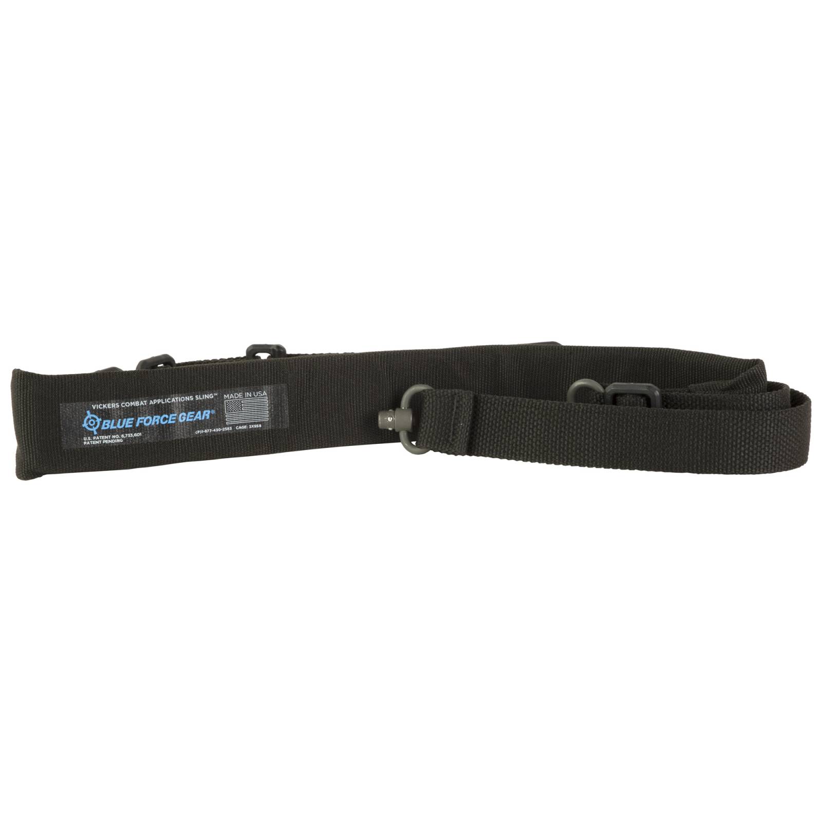 Blue Force Gear, Vickers, Padded 2-Point Combat Sling, Push Button Swivels, 54" with Adjuster Tightened, Black, 1.00" Webbing