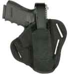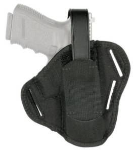 This gun holster by Black Hawk has a 3-slot design that gives you the option of wearing it in multiple positions from strong side appendix or cross-draw. These BlackHawk Pancake Holsters are ambidextrous (adjustable retention strap and thumb break are reversible). The belt slots pull the holster body close for better concealment and fits belts up to 1.75" wide. They are lined with smooth, snag-resistant material.