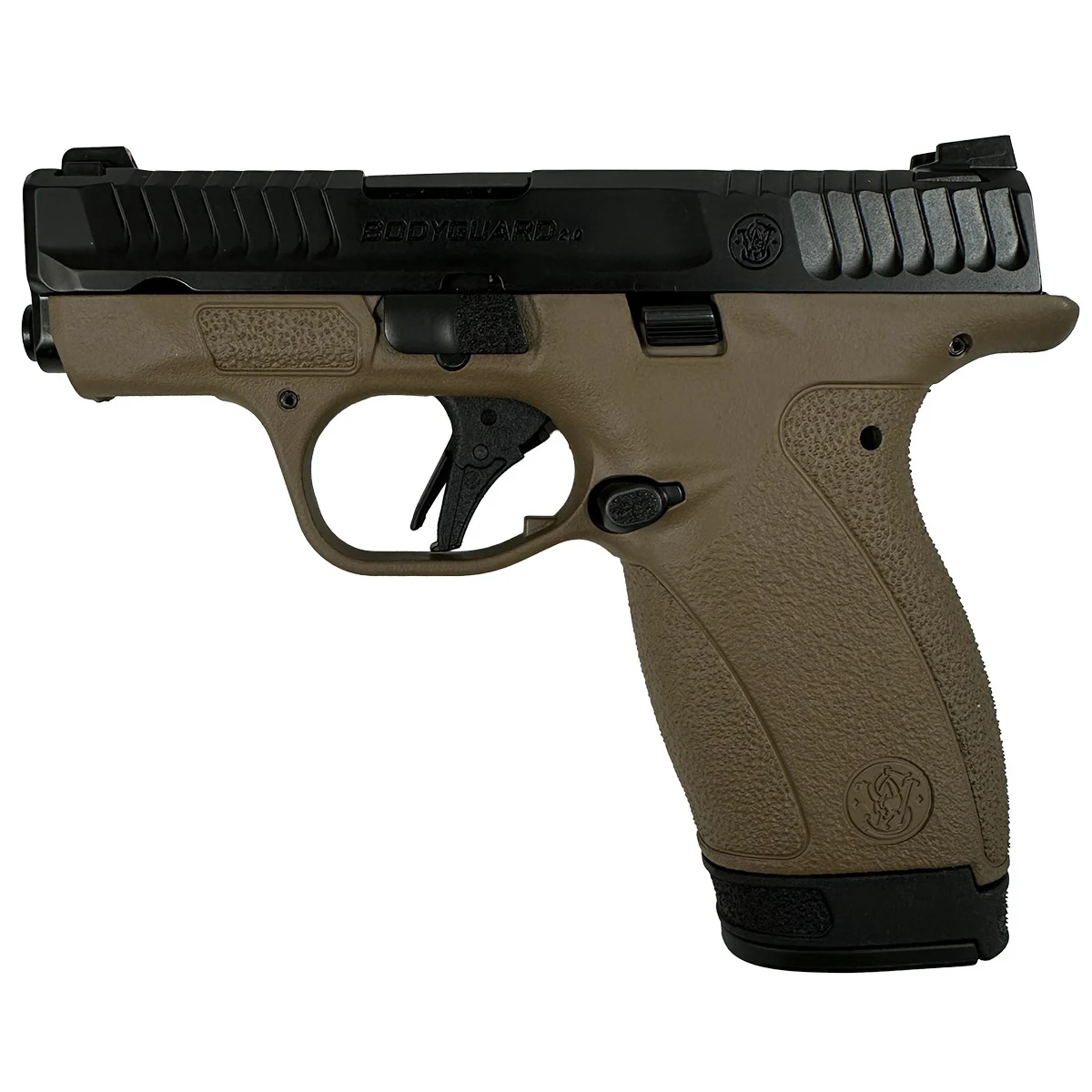 The Bodyguard 2.0 handgun seamlessly combines being lightweight and small with unparalleled performance. Enhanced features like a new ergonomic profile that allows for better control, a striker-fired flat-face trigger for improved accuracy, a reversible magazine release, and increased capacity make the Smith & Wesson Bodyguard 2.0 ready to fit your needs.