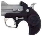Bond Arm's is the picture image of a break action handgun as if it were taken out of an Western photo. They are designed for easy concealment when needed. The Backup features a textured, anti-glare, stainless steel double-barrel and frame. The barrels "flip" around to be loaded. It is designed for easy concealment when you need it. This firearm has an automatic spent-casing extractor, patented rebounding hammer, and retracting ring pins. The Backup comes standard with a cross-bolt safety and a spring-loaded, cammed locking lever.