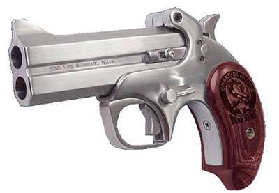 The Snake Slayer IV has a 4.25" long barrel (versus 3.5" barrel). This longer barreled Snake Slayer provides tighter shot patterns, higher velocities, and even more manageable recoil than the original Snake Slayer The Snake Slayer IV will accept all the extra interchangeable barrels and also has the extended grips for added comfort. Bond Arms Snakeslayer IV features interchangeable barrels and automatic extractors. Also includes a rebounding hammer, retracting firing pin, crossbolt safety, spring loaded cammed locking lever, trigger guard and stainless steel with satin polish finish.