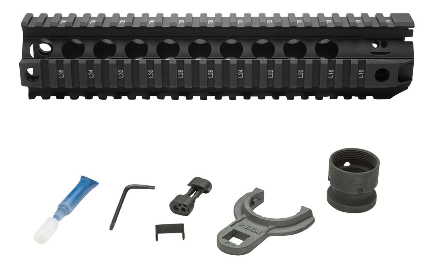 This 10" handguard features 4 QD sling swivel sockets, a steel barrel nut, and its made of 6061-T6 aluminum.