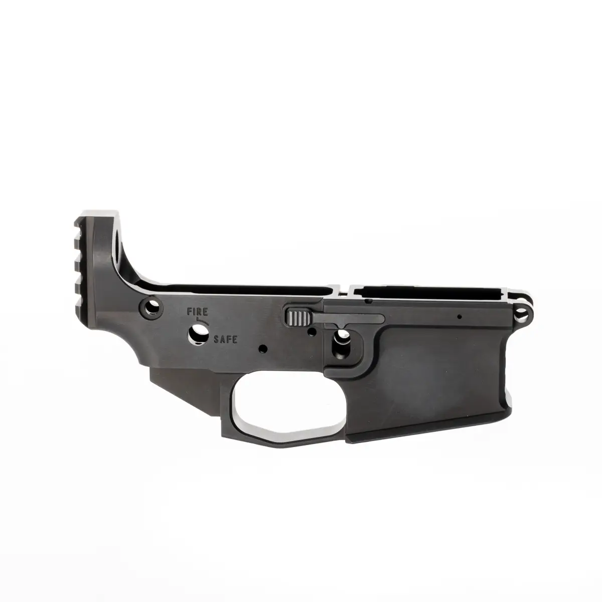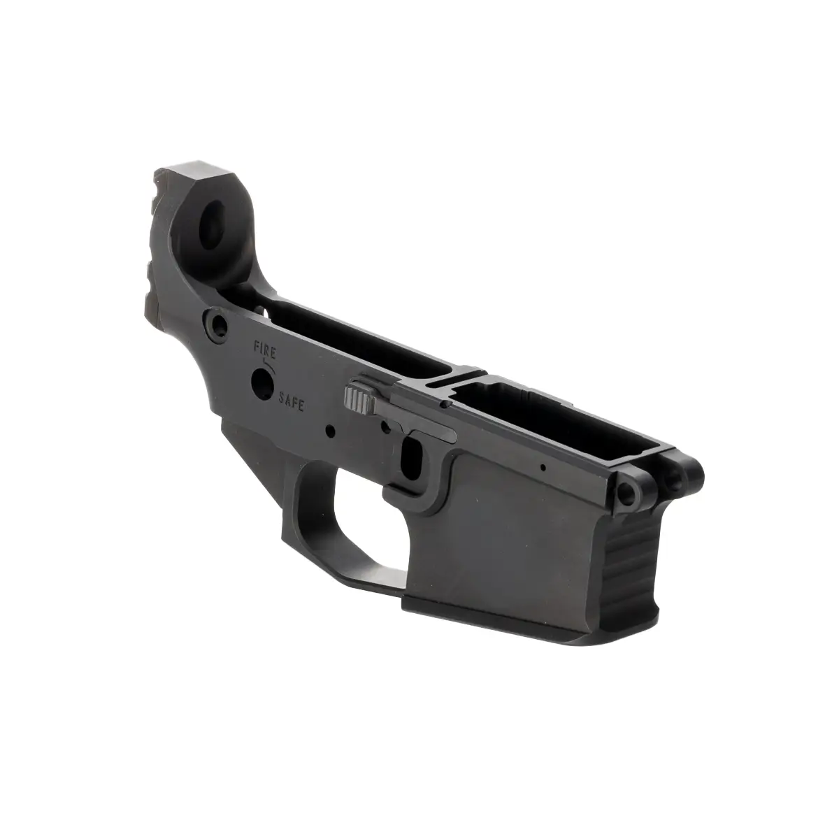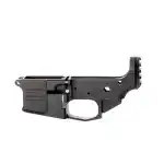 This Lower Receiver is made from billet 7075 T-6 aluminum with a hard-anodized finish, has integral oversized trigger guard, and the unique features of a threaded bolt catch pin and captive set screw for the takedown pin detent spring, both included.