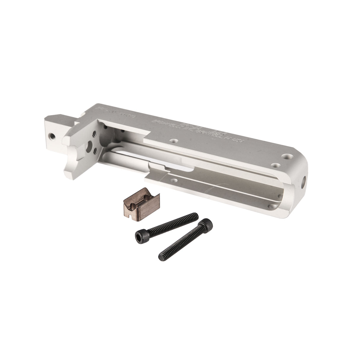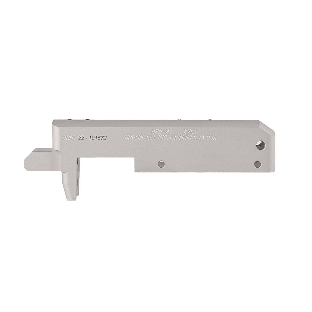 The Brownells BRN-22 Receiver is ready to be the foundation of your custom rimfire rifle build. Each BRN-22 receiver is precision-machined from 6061 aluminum billet to exacting tolerances. Why machined instead of forged, like most commercial receivers? All you need to do is look inside at the smooth, clean interior to realize that a machined receiver can be held to much tighter tolerances for a precise fit with other parts. After machining, BRN-22 receivers get a tough matte black Type 2 hardcoat anodized finish (like the finishes found on many AR-15 receivers). There’s even a pre-drilled cleaning rod hole at the rear of each Brownells BRN-22 receiver for easy cleaning of the bore from the chamber, the PROPER way to prevent a cleaning rod from damage to the muzzle crown that can compromise accuracy.