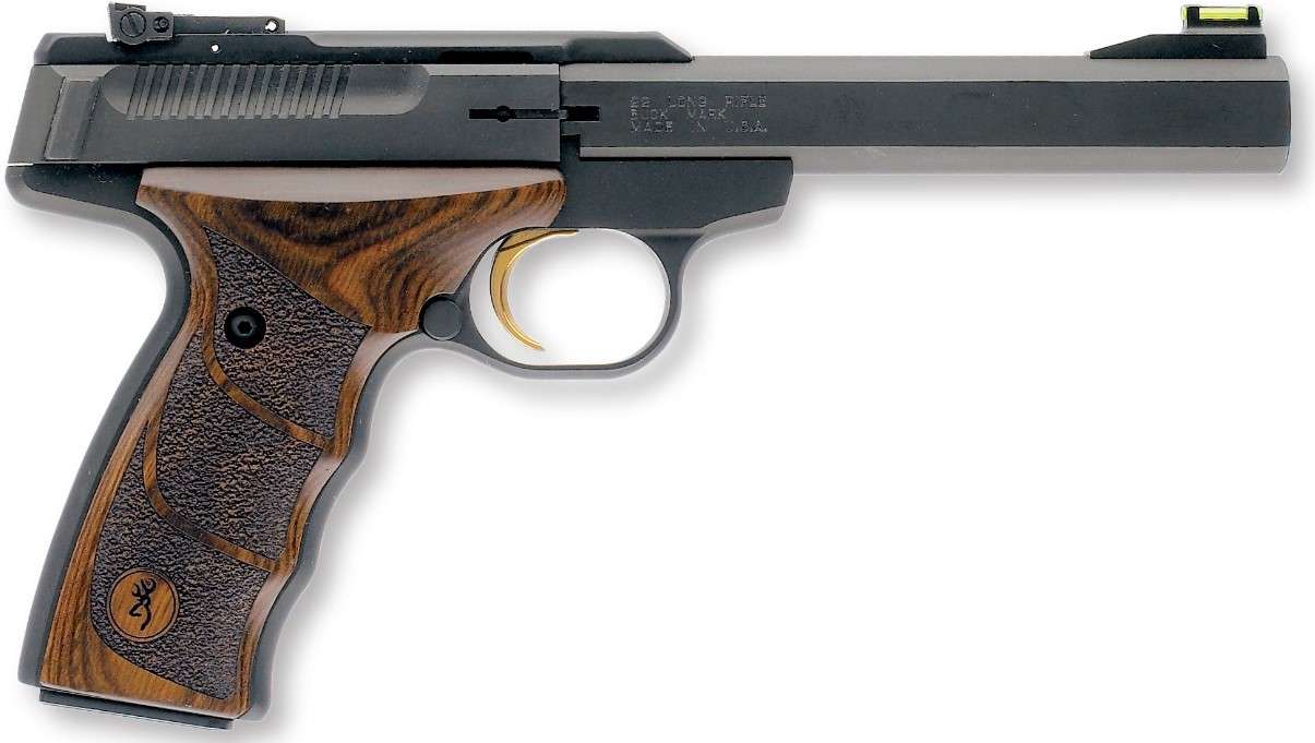 Browning's Buck Mark rimfire pistol leads the industry in quality, reliability, accuracy and variety. It is constructed of a solid piece of aircraft-grade 7075 aluminum alloy, and then CNC machined to exacting tolerances. The crisp single-action trigger, hand reamed chamber, target crowned barrel and finely adjustable target sights mean the Buck Mark comes ready for fun straight from the box. Its slide features built-in recess and raised side panels for better grip along with a manual slide release. The slab side barrel has highly polished flats for a highly attractive accent. The TRUGLO/Marble Arms front fiber-optic sight gives superior target acquisition even in low light conditions, and you can dial it in tight with the Pro-Target adjustable rear sight.