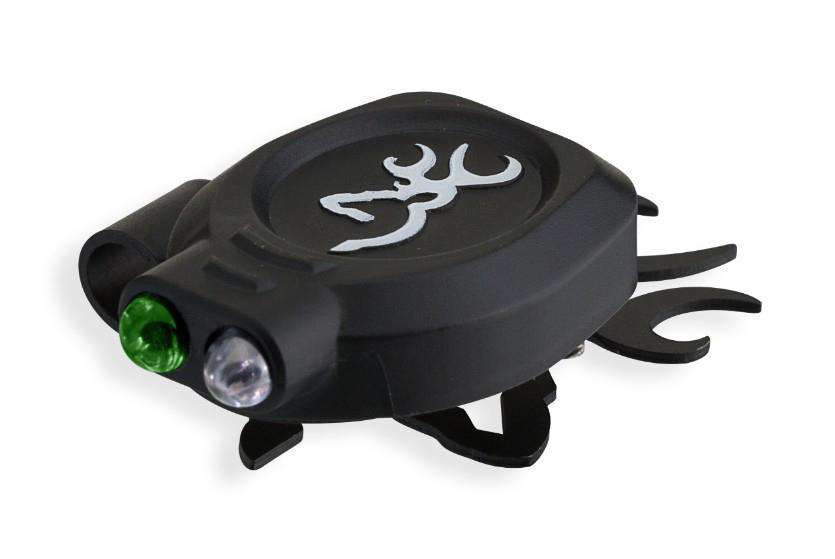 Buckmark Cap light clips onto your cap brim. Two color modes- white or green, with a run time of 9-12 hours.