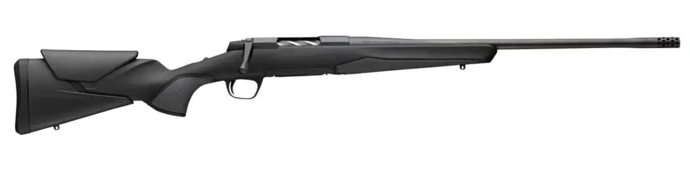 The Browning Micro features a reconfigured receiver with additional bolt guidance surface area for smoother operation; redesigned bolt with ergonomic handle shape; adjustable, multiple-lever DLX trigger; Vari-Tech stock features adjustable length of pull, adjustable comb, interchangeable grip modules and over molded grip surfaces; Sporter contour barrel and threaded muzzle brake. Includes thread protector.