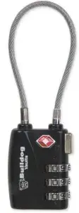 The TSA lock with steel cable is an approved travel Lock. It is all metal designed to work with all Bulldog locking zippers. The Cable is 4.5 inches total length and half that locked. It has a easy to use and reset combination lock.