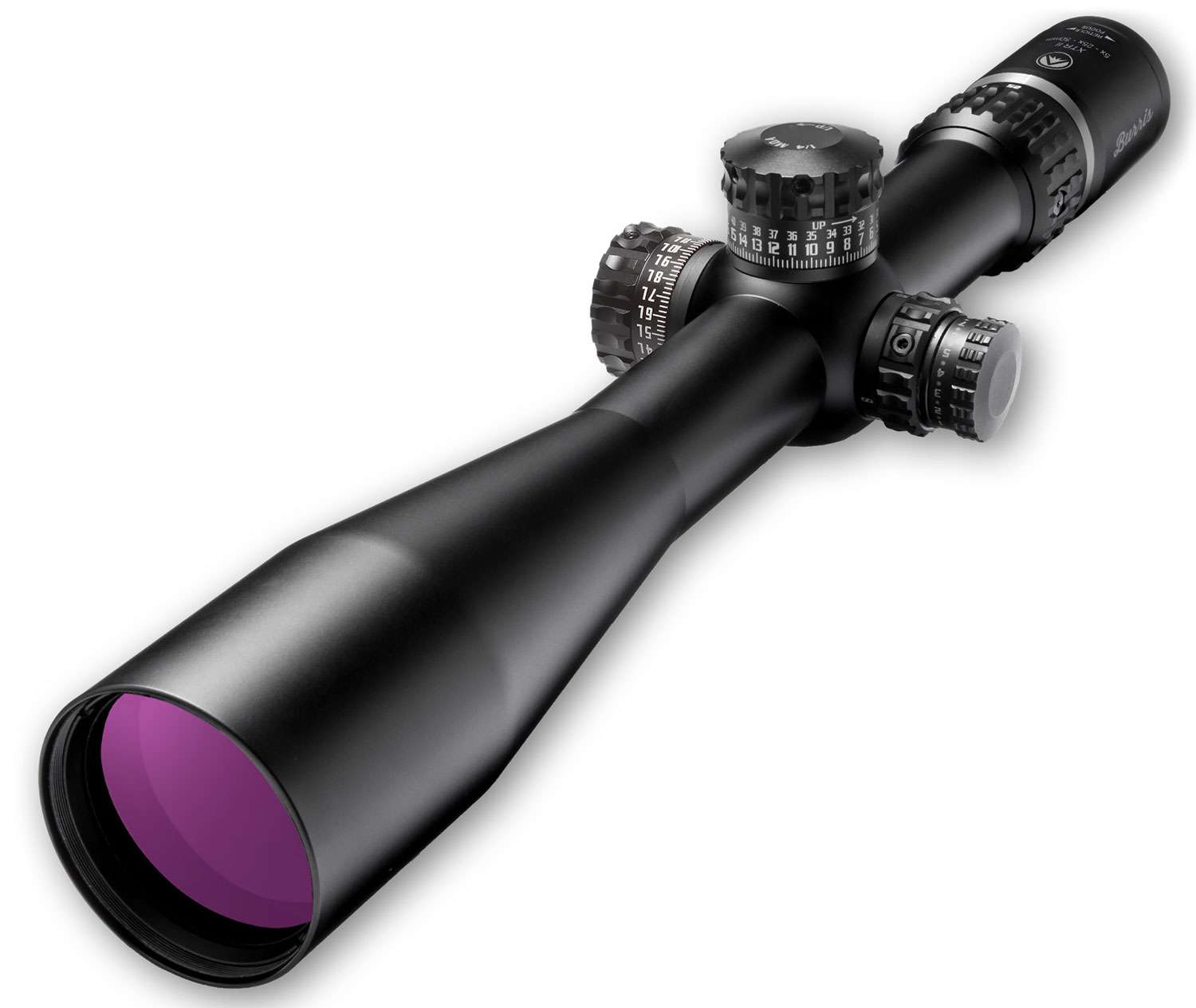 Burris' XTR II riflescope features a 5x zoom system, front focal plane precision reticle, dimensionally-matched precision adjustment knob with Zero Click Stop technology, and outstanding optical performance. The G2B Mil-Dot is a versatile, combat-proven reticle ideal for mid- to long-range tactical shooting. It has 1/2-mil hash marks in between the 1-mil dots for precise aiming, distance measurement, holdover, and hold-off for wind. The Front Focal Plane reticle design allows the reticle size to increase or decrease with the magnification and while keeping trajectory compensation correct and proportional. It has Hi-Lume multi-coated lenses which optimize target resolution, contrast, and low-light performance. The hand-fitted internal assemblies are triple spring tensioned for absolute shockproofing, even under severe recoil, and are vibration-resistant, even on extended vehicular patrols.