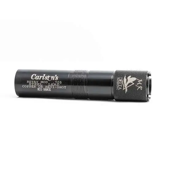 These choke tubes feature a longer parallel section allowing for fewer flyers and denser patterns. These choke tubes extend 3/4 " outside the barrel eliminating damage to your barrel caused by prolonged steel shot use. The longer parallel section allows for use of larger steel shot in tighter choke constrictions. They are made of 17-4 stainless with a knurled extension and a blue finish. Do not use steel faster than 1550 FPS or steel shot sizes larger than BB through the Long Range choke tube.