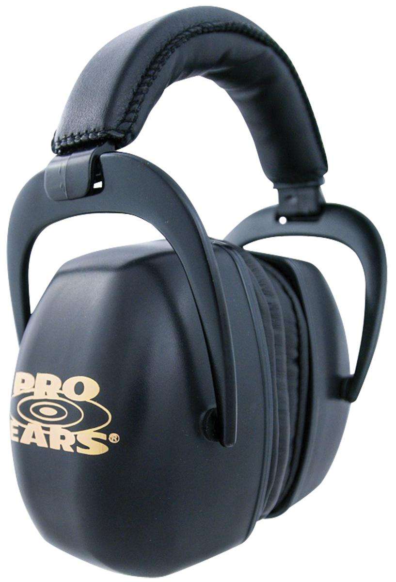 Pro Ears ultra-pro are rugged, hight profile cups, adjustable headband, and ProForm leather ear cushions. These are suitable for a high noise environment like Shooting on the rang, in a factory, or in your home workshop. The ultra-pros can be used in conjunction with a hard hat. The included hard hat adapter fits most hard hats pivoting and locking in the up position. The snap in ear cushions make replacement quick and easy. These PRo Ears weight 12 ounces and have a noise reduction rating (NRR) of 30.