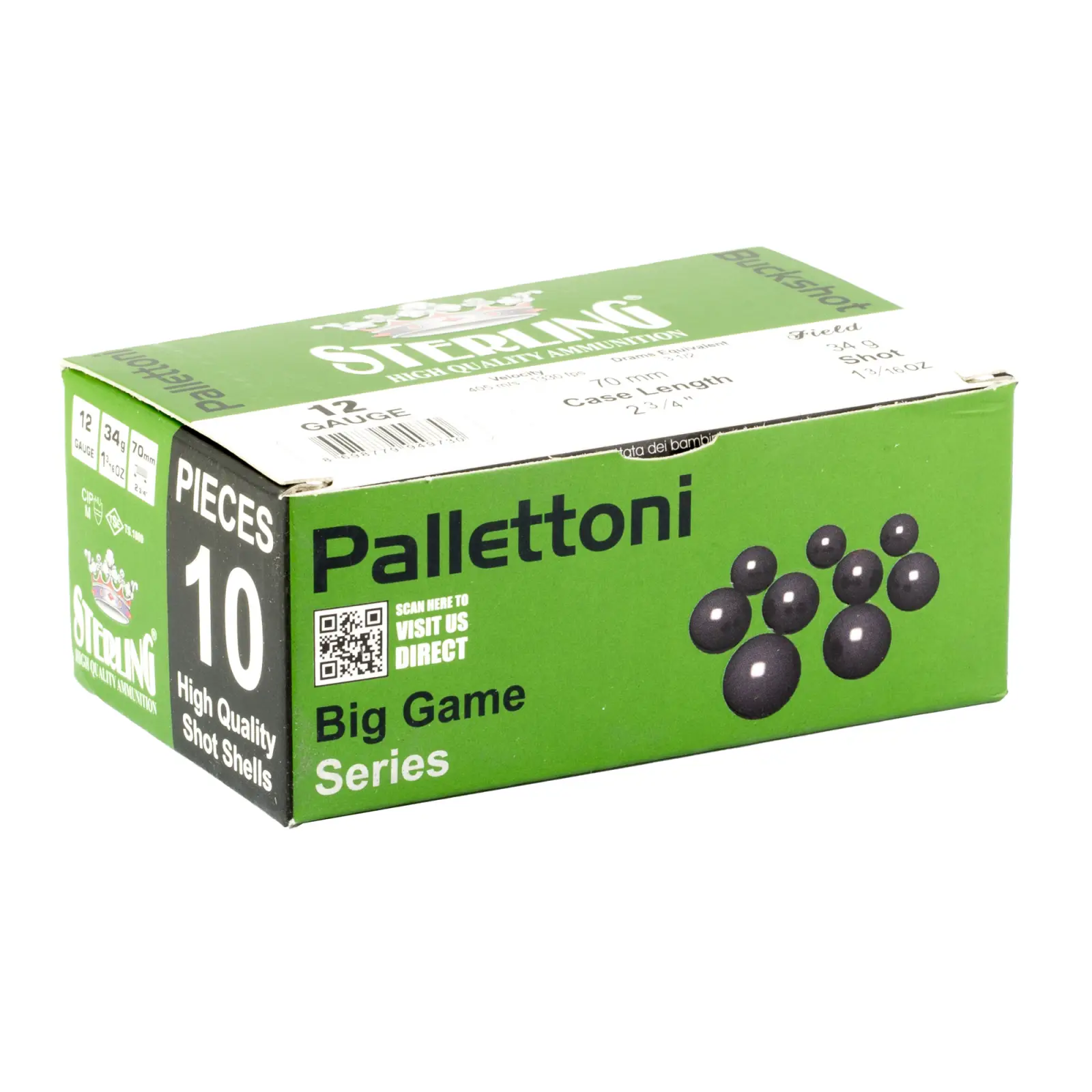 Sterling’s Big Game Series 12 Gauge 00 Buckshot is engineered for hunting, home defense, and tactical use. Each 2 3/4" shell is loaded with nine pellets of 00 buckshot, delivering tight patterns and powerful energy transfer on target. The round is designed for consistent performance in both pump-action and semi-automatic shotguns.