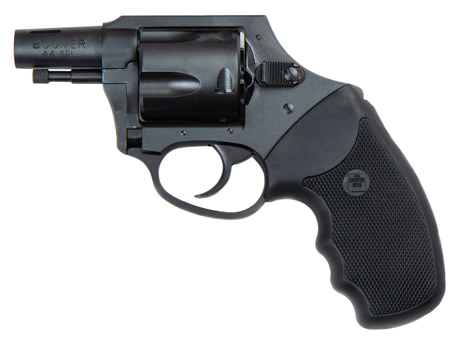Known for its rugged reliability and stopping power, Charter's Bulldog is a versatile revolver for personal or home protection. With a barrel length of 2.5", the .44 Special is one of the larger revolvers to qualify for concealed carry. It has potent stopping power, while not being burdensome to carry.The compact Bulldog Boomer is designed specifically for concealed carry. It features a DAO hammer and full rubber combat grips. This model has a black nitried finish.