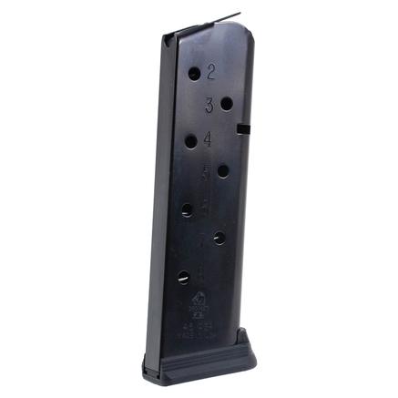 Check-Mate Full Size 1911 8 Round .45 ACP Magazine, Black. Manufactured from durable steel, this magazine is designed by Check-Mate Industries for full-size 1911 pistol platforms chambered in .45 ACP. This magazine features a matte-blued finish and boasts a capacity of 8 rounds of .45 ACP cartridges. Each Check-Mate magazine is 100% developed and manufactured in the U.S.A., to ensure superior performance, reliability, quality, fit, and finish with your favorite firearm.