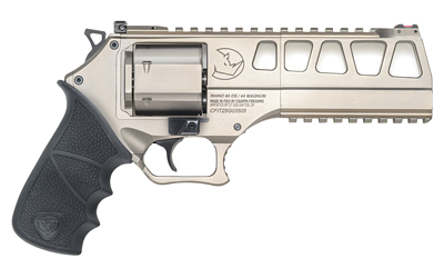 Chiappa Firearms, Rhino L Frame 60DS Revolver, Double Action/Single Action, 44 Remington Magnum, 6" Barrel, Aluminum Frame, Nickel Finish, White, Hogue Rubber Grips, Fiber Optic Front Sight, Adjustable Rear Sight, 6 Rounds, 3 Moon Clips