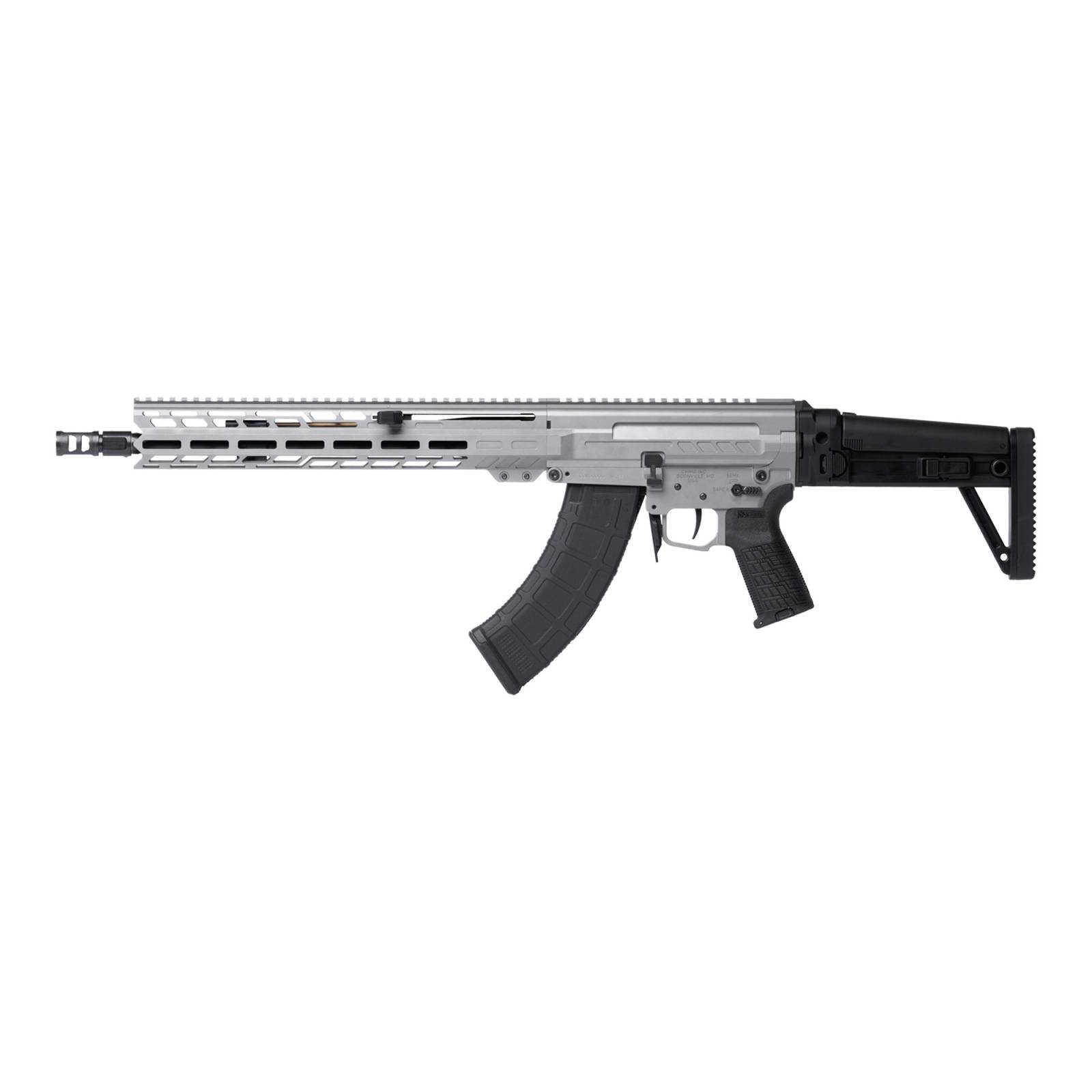 CMMG, DISSENT MK47, Semi-automatic Rifle, 7.62X39mm, 14.3" Medium Taper Barrel, 16.1" OAL with Pinned and Welded ZEROED SVD Muzzle Brake, Cerakote Finish, Tungsten, Free Float M-LOK Handguard, DISSENT Side Folding Stock, Manual Safety, 30 Rounds, 2 Magazines