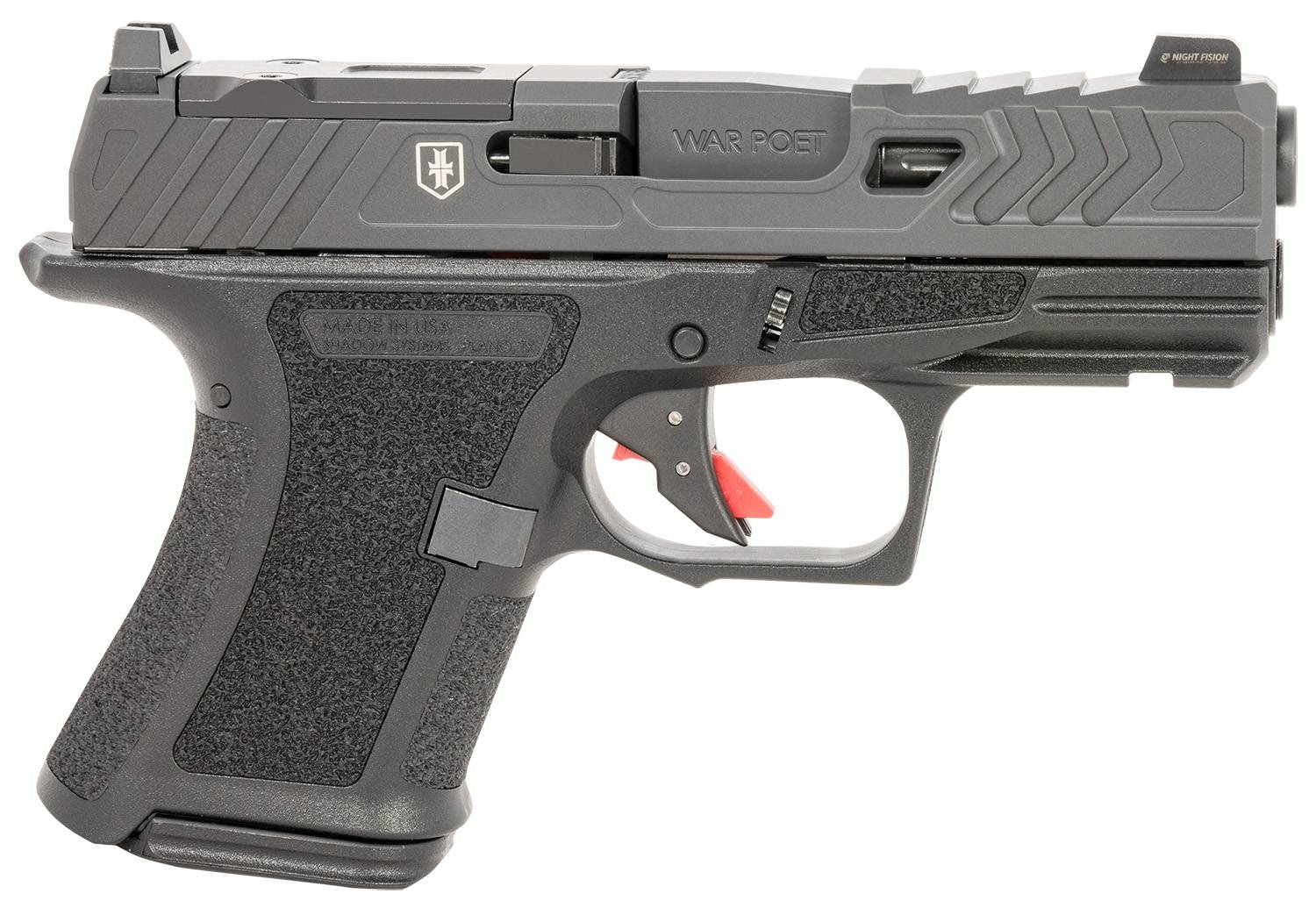 Shadow Systems SS4084 CR920 War Poet 9mm Luger 10+1/13+1, 3.40" Black Nitride Match Grade/Spiral Fluted Barrel & Optic Cut/Serrated/Window Cut Stainless Steel Slide, Black Polymer Frame w/Beavertail & Picatinny Rail, Features "War Poet" Engraved